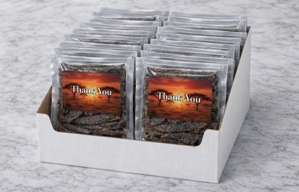 We brand premium biltong and droëwors packets between 20g and 25g for businesses looking to make a lasting impression. Whether you're promoting your brand, thanking clients, or selling with your own message — our BrandPack format delivers.
