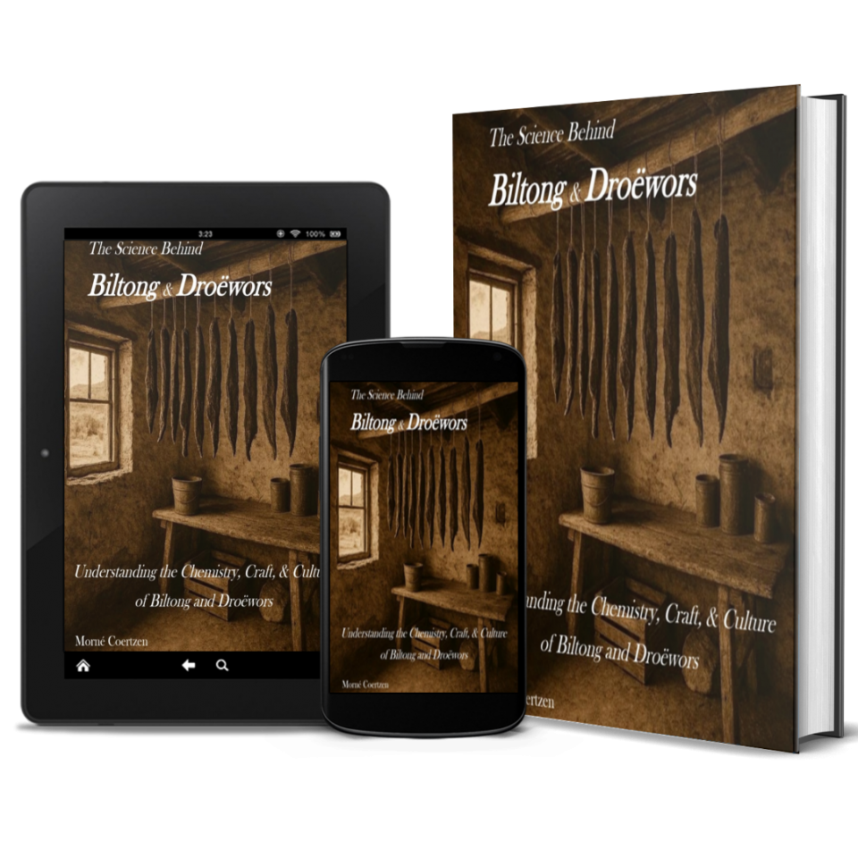 The Science Behind Biltong and Droëwors Book, honour this tradition by teaching the authentic method exactly as it has been passed down through generations. This page gives you a clear, accurate understanding of how traditional droëwors is made. If you want the complete step‑by‑step method, our book offers the most detailed guide available.
