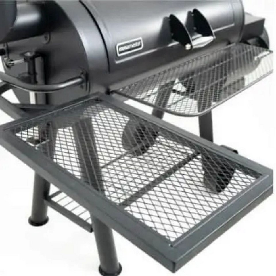 The Alpha Grill & Smoker brings together the best of direct-heat grilling and smoking, featuring a sturdy offset smoker and chimney for enhanced performance.
