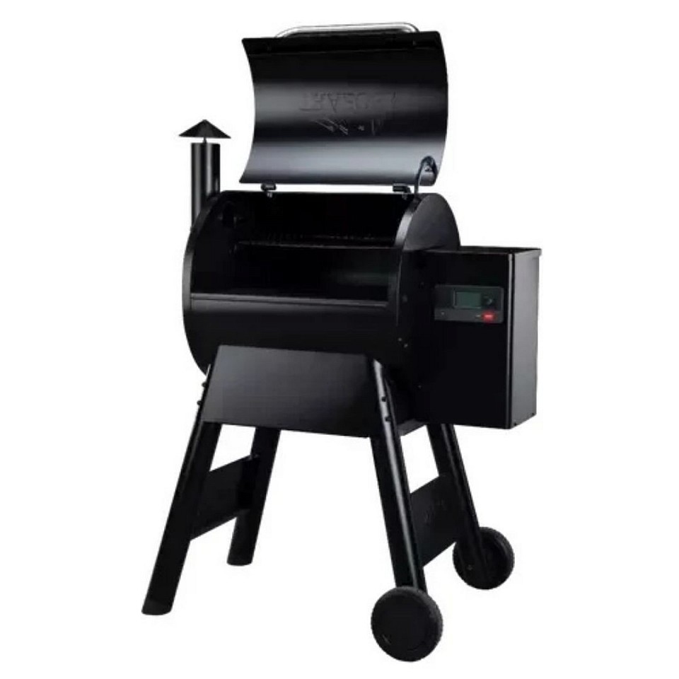 The 8.2 kg pellet hopper capacity ensures extended cooking sessions, and the included Traeger meat probe makes checking internal meat temperatures simple and accurate.