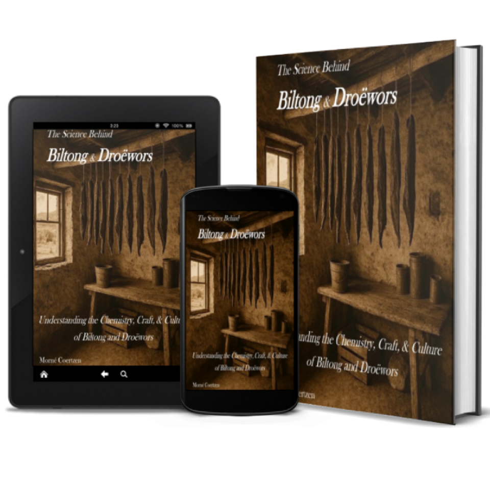 This page introduces the core principles behind safe biltong and droëwors production. For the full scientific detail, including measurements, pathogen behaviour, and controlled‑drying guidelines, you’ll find the complete breakdown in The Science of Biltong and Droëwors.